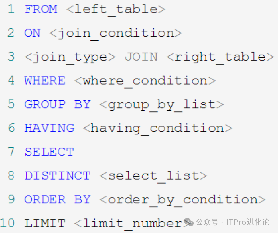 比如写了一个 SQL 语句,那么它的关键字顺序和执行顺序是下面这样的:
