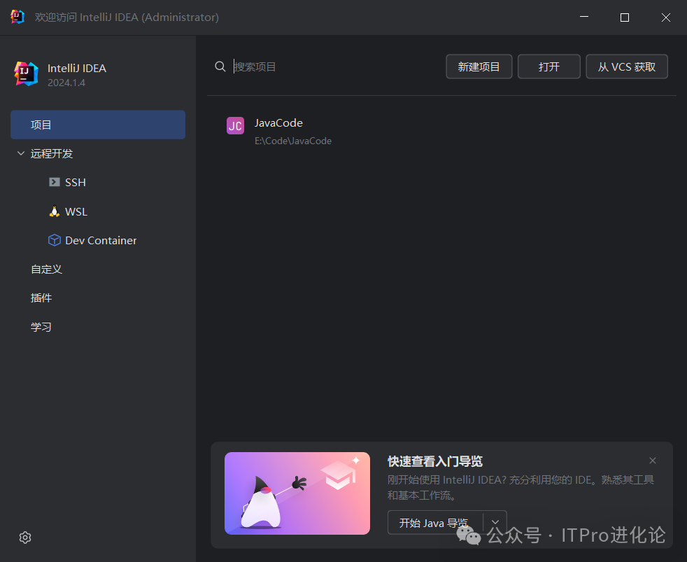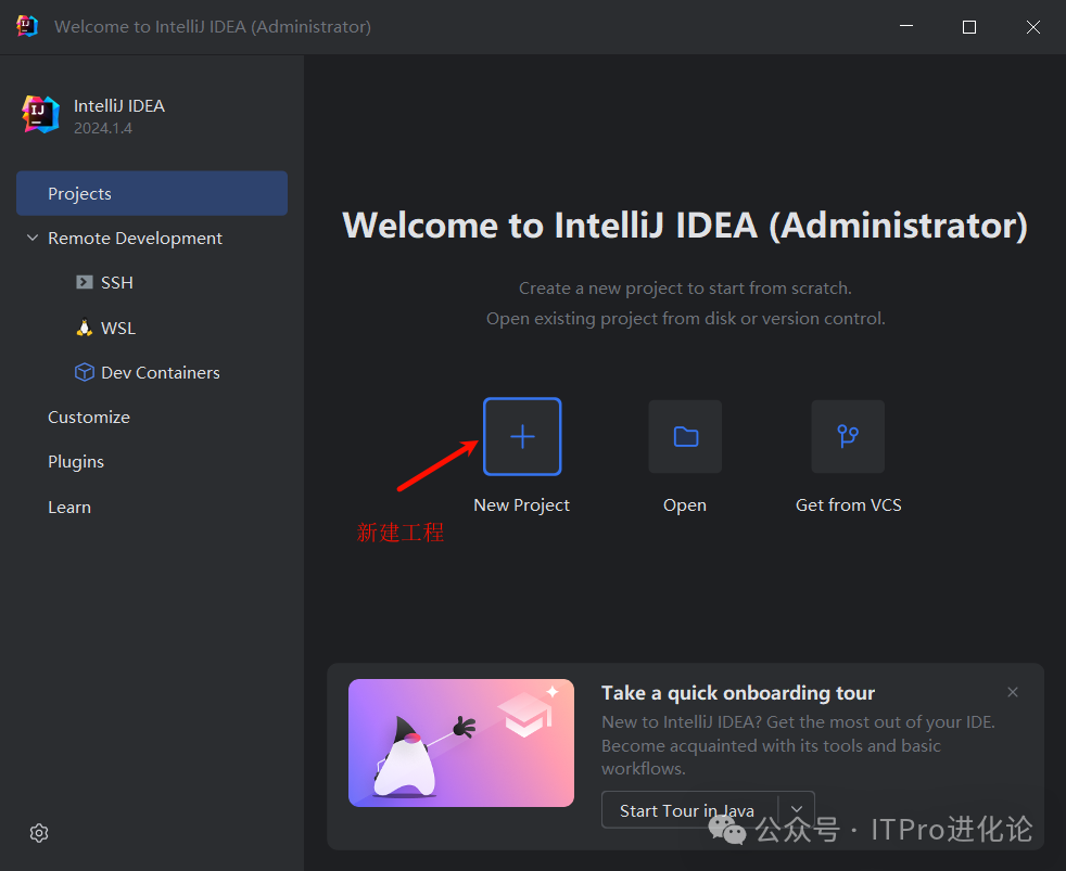 双击打开IntelliJ IDEA,弹出欢迎窗口,点击New Project