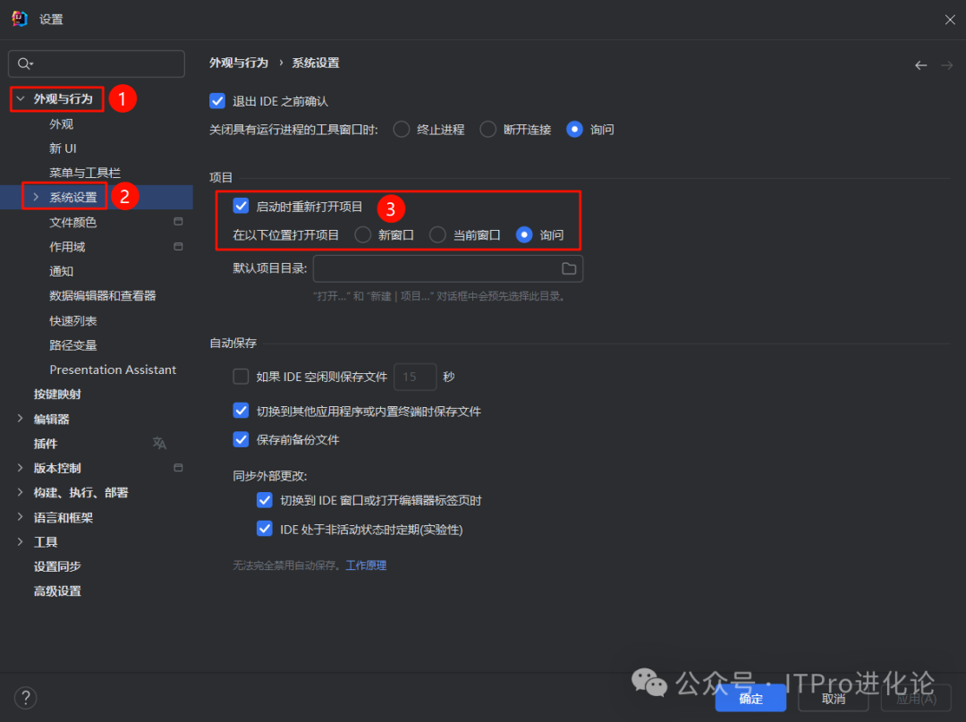 ,默认是勾选状态,每次打开软件都是重新打开上一次的项目;