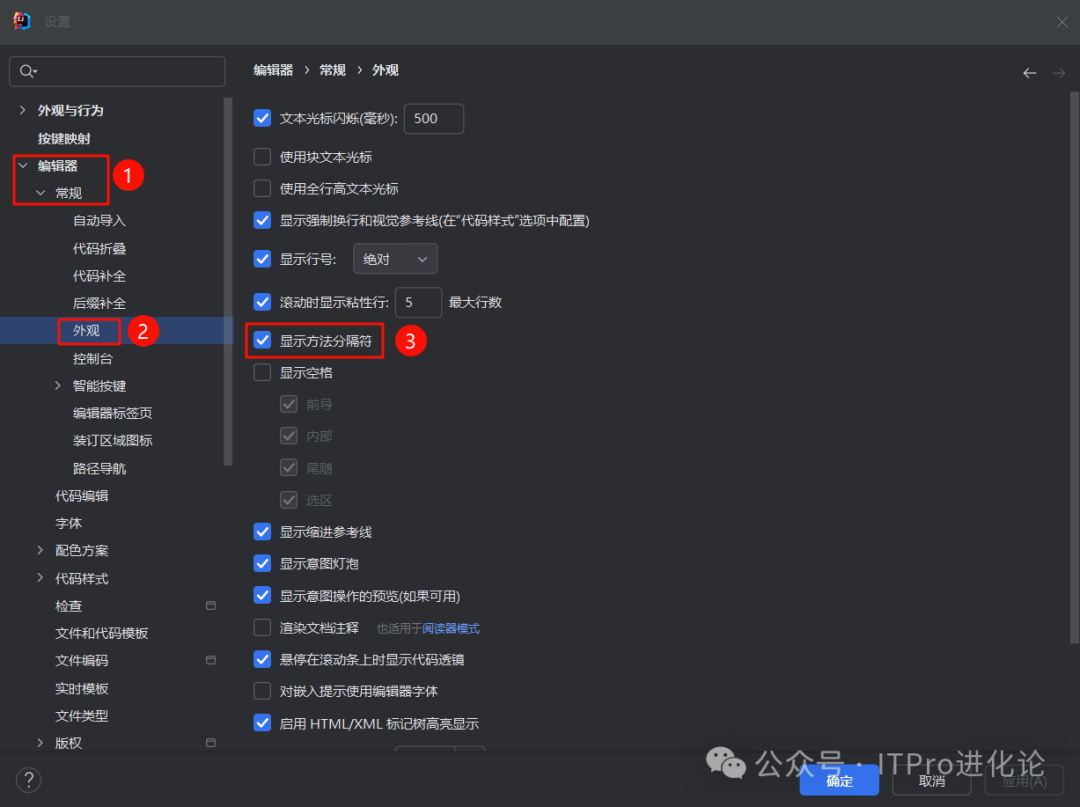 设置——编辑器——常规——外观,勾选显示方法分隔符