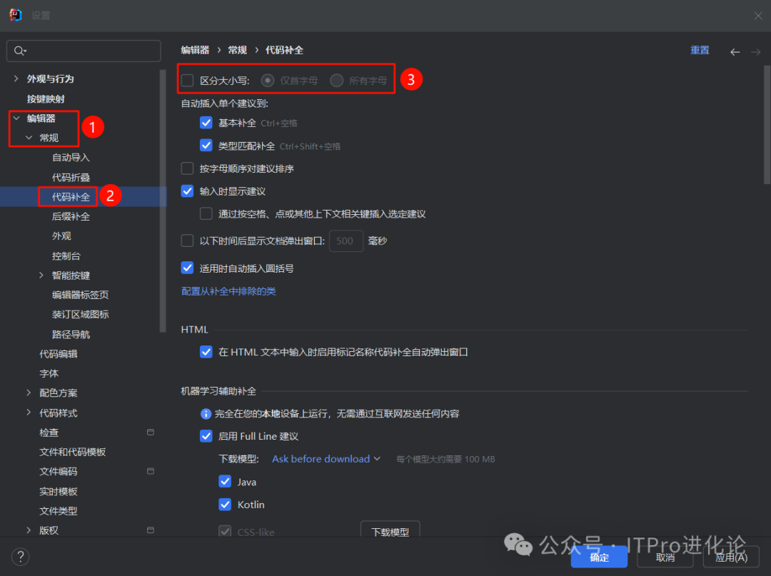 的勾选,这样写代码的时候不用特意去切换首母大小写也可以进行代码提示和补全;
