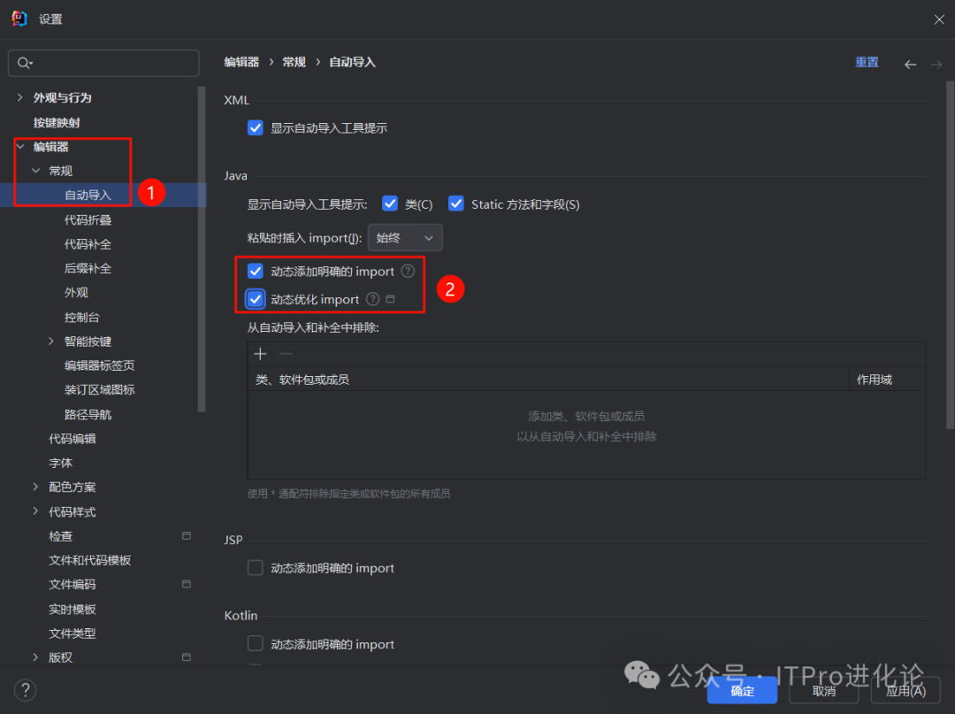 自动导包设置:设置——编辑器——常规——自动导入,勾选动态添加明确的import