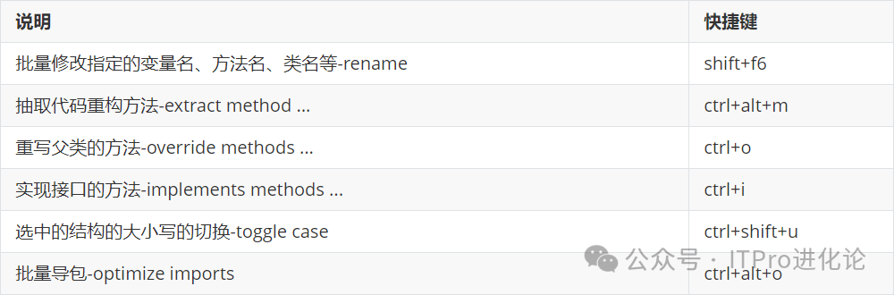 sout:相当于System.out.println soutm:打印当前方法的名称 soutp:打印当前方法的形参及形参对应的实参值 soutv:打印方法中声明的最近的变量的值 变量.sout:打印当前变量值 变量.soutv:打印当前变量名及变量值