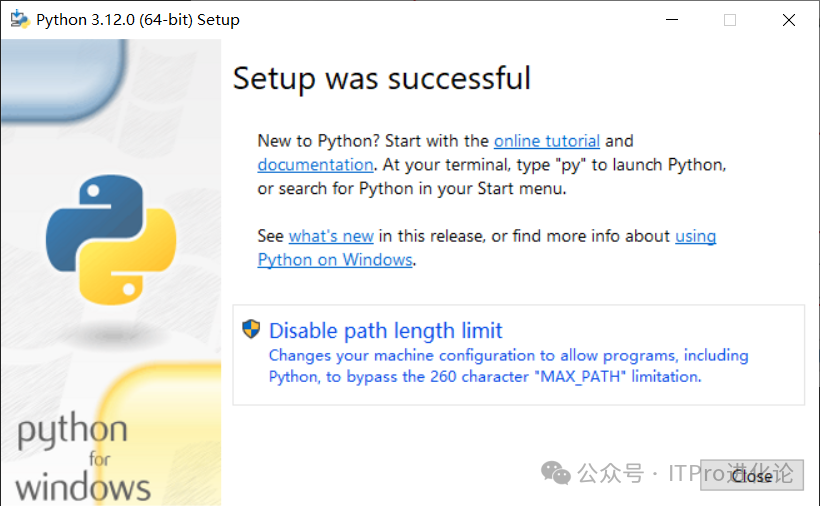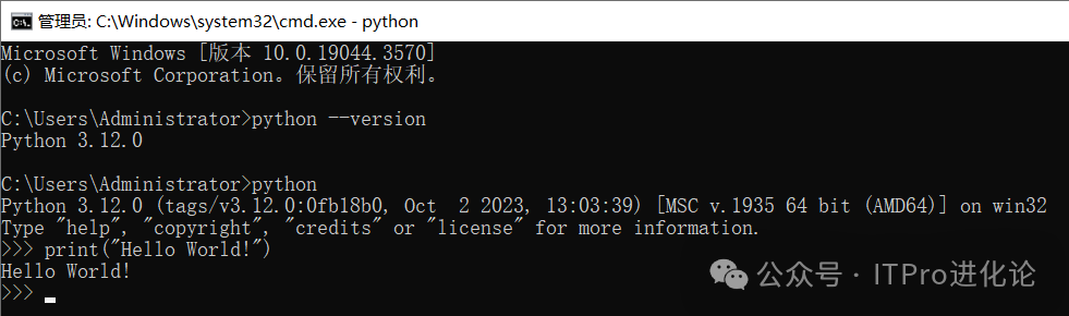 至此,Python 3.12.0 版程序就安装完毕并验证可用了。使用Windows终端(cmd)或者IDLE开发工具,都可以启动Python编程工作。