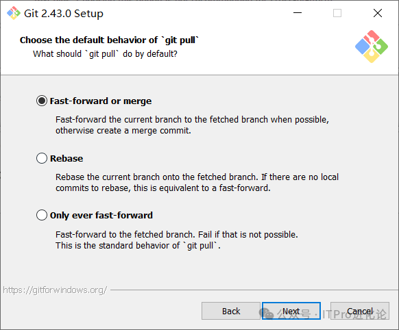 选择git pull合并的模式,保持默认,直接点击Next即可;
