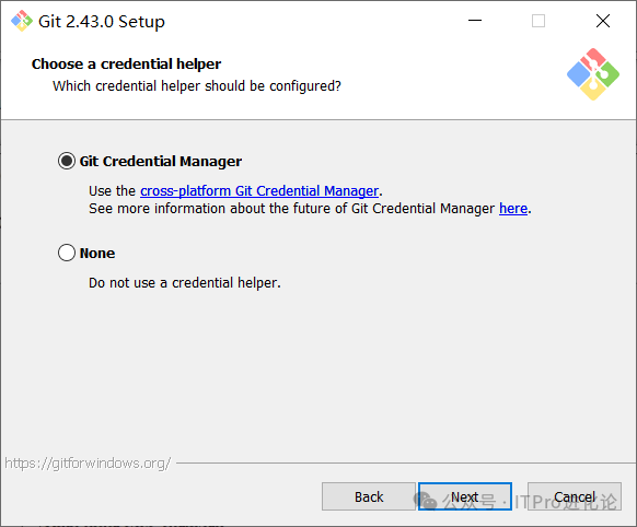 选择 Git 的凭据管理器,默认的跨平台的凭据管理器,直接点击Next即可;