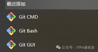 Git GUI: 图形界面的Git,不建议初学者使用,尽量先熟悉常用命令