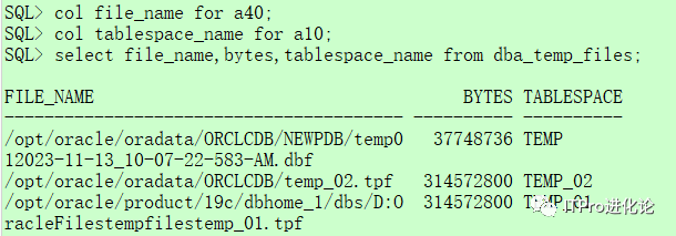 Oracle将临时表空间与相应的临时文件信息存储在dba_temp_files数据字典当中。在v$tempfiles视图中,可以查看临时表空间的使用情况。