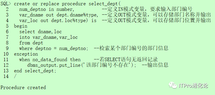 var_dname dept.dname%type; --声明变量,对应过程中的OUT模式的var_dname