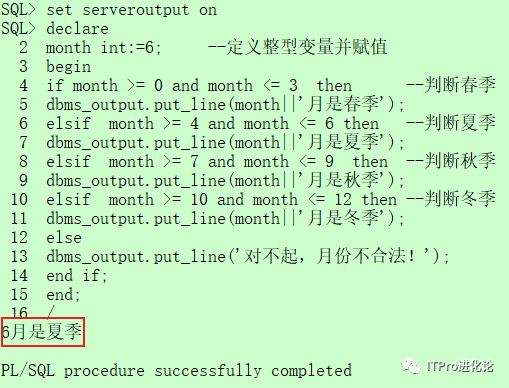 首先指定一个月份数值,然后使用IF…THEN…ELSIF语句判断它所属的季节,并输出季节信息,代码如下: