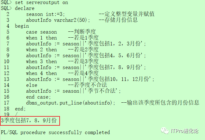 dbms_output.put_line(aboutinfo); --输出该季度所包含的月份信息