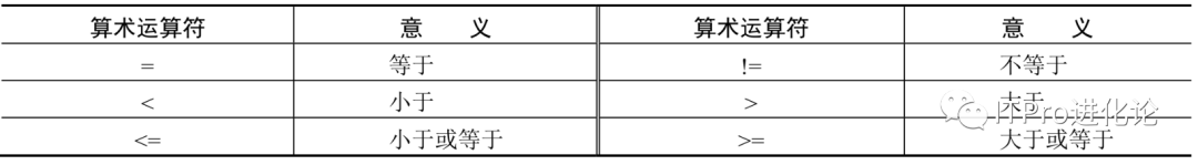 布尔表达式中的算术运算符及其意义如表所示: