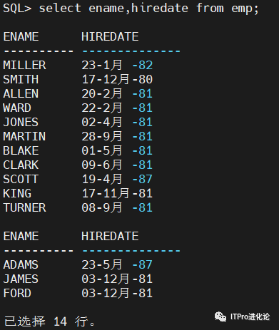日期列是指数据类型为DATE的列。查询日期列与查询其他列没有任何区别,但日期列的默认显示格式为DD-MON-RR。