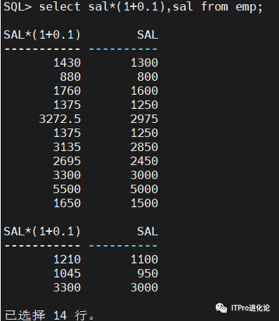 --将emp表的sal列的数值显式为原值的1.1倍后的值