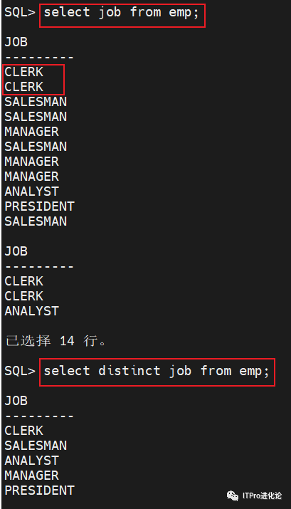 在SELECT语句中,可以使用DISTINCT关键字来限制显示重复的数据,该关键字用在SELECT子句的列表前面。