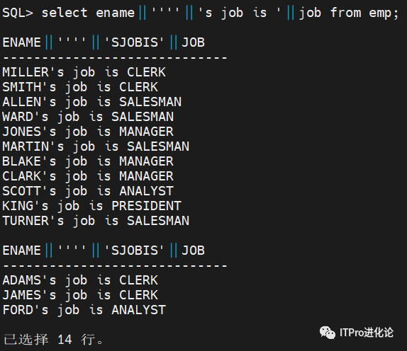 连接字符串可以使用“||”操作符或者CONCAT函数。当连接字符串时,如果是在字符串中加入数字值,可以直接指定数字值;而如果是在字符串中加入字符值或者日期值,那么必须将值放在单引号中。