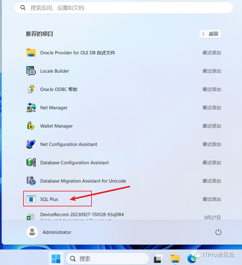 SQL Plus工具在开始菜单里可以找到;