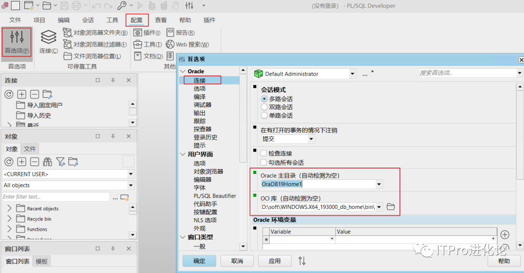退出PL/SQL Developer,重新打开,可以选择安装的数据库实例了;