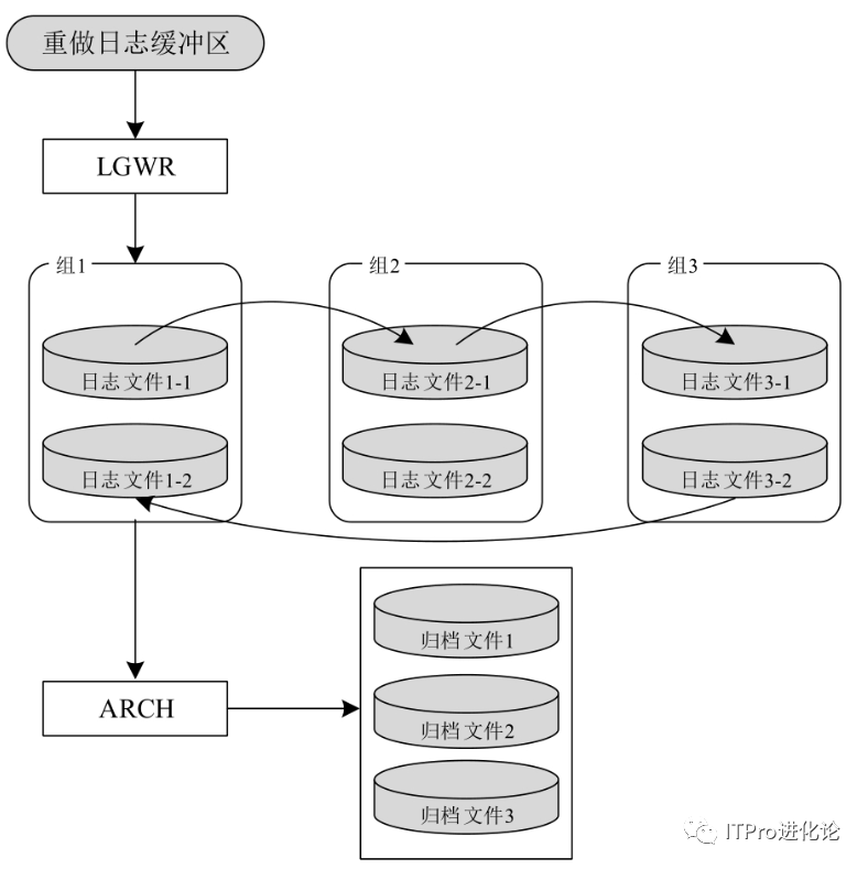 归档(ARCH)进程是一个可选择的进程,只有当Oracle数据库处于归档模式时,该进程才可能起到作用。若Oracle数据库处于归档模式,当各个日志文件组都被写满,在即将被覆盖之前,先由ARCH把即将被覆盖的日志文件中的日志信息读出,然后再把这些“读出的日志信息”写入归档日志文件中;