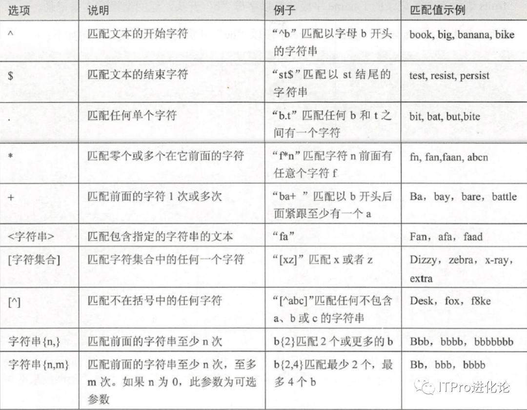Oracle中使用REGEXP LIKEO函数指定正则表达式的字符匹配模式,下表列出了 REGEXP LIKE函数中常用字符匹配列表。