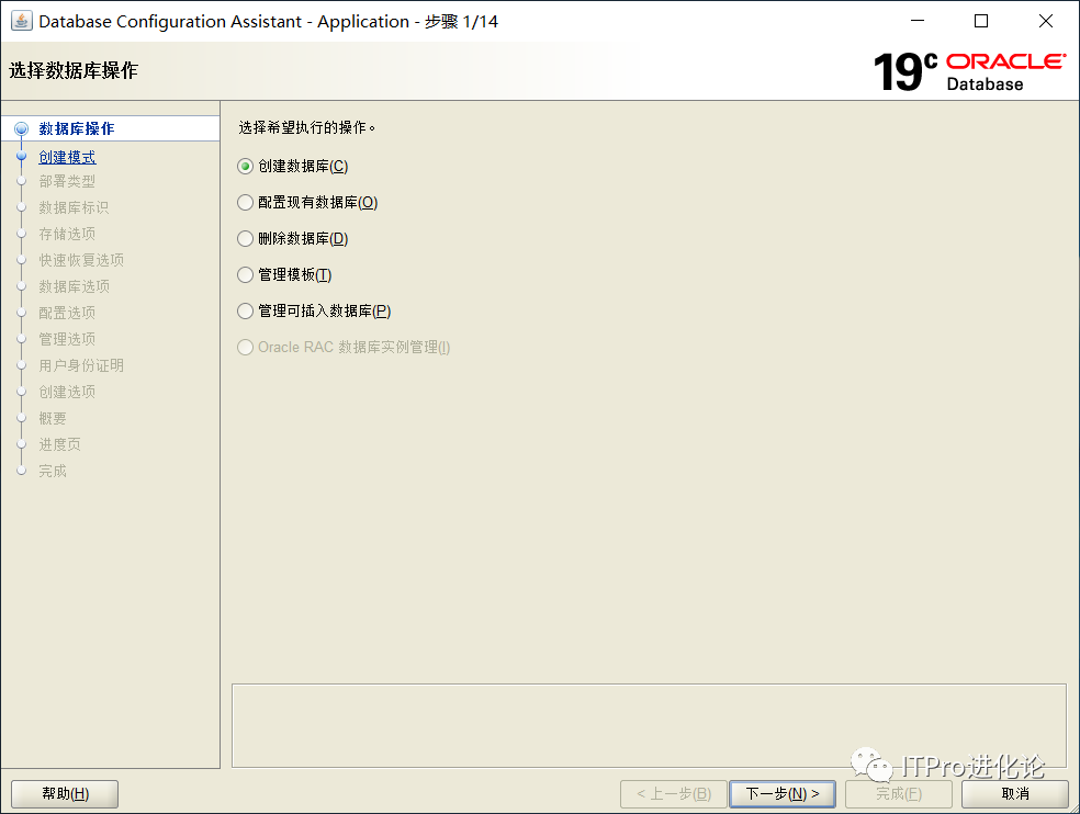 在Oracle 19C安装过程中已经创建了名为ORCL的数据库,我们也可以在Oracle安装完成后重新创建数据库,直接上干货: