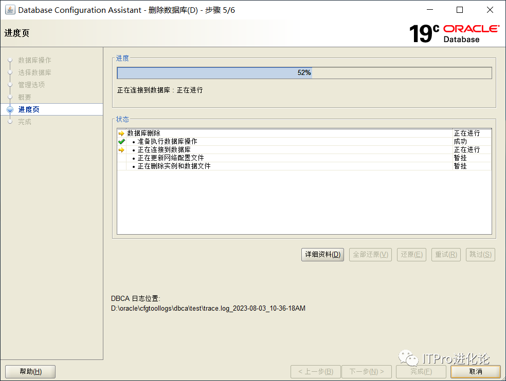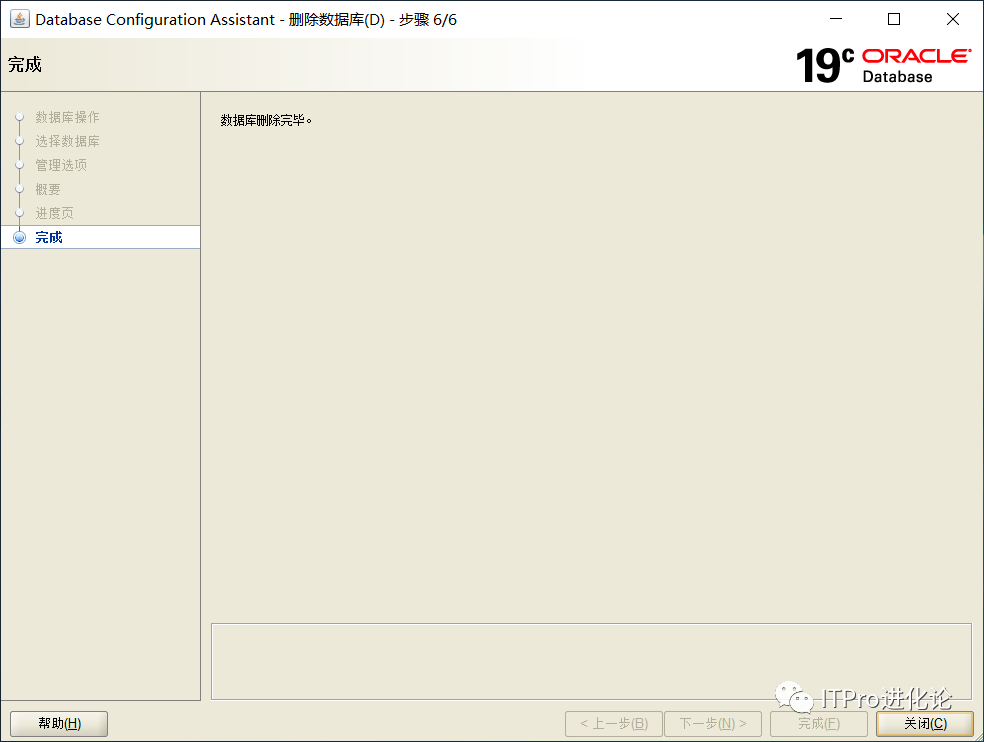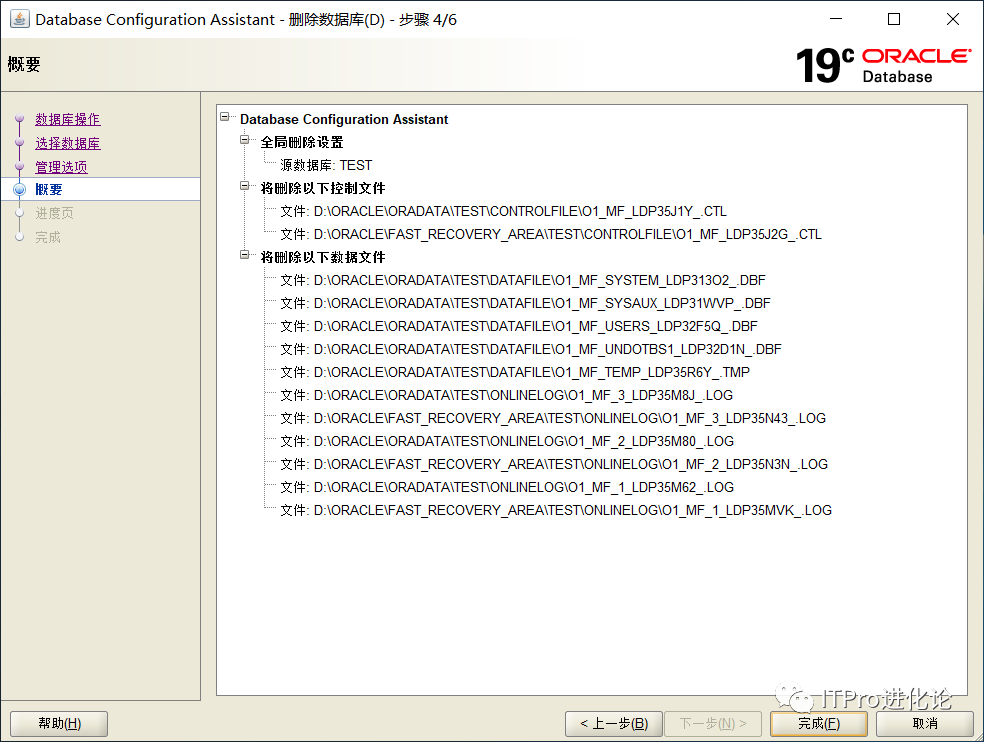 step5: 【概要】窗口,检查要删除数据库的详细信息,没有问题的话,直接点击【完成】;