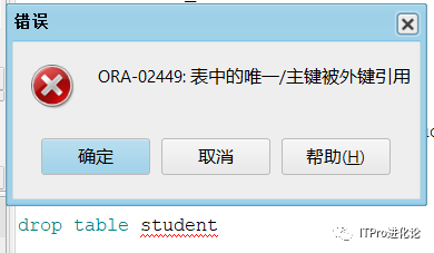 通过drop table student命令删除student表时,因存在外键约束,提示下图错误: