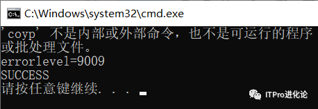 没有输出SUCCESS,因为errolevel的值小于9010,所以没有执行echo SUCCESS。