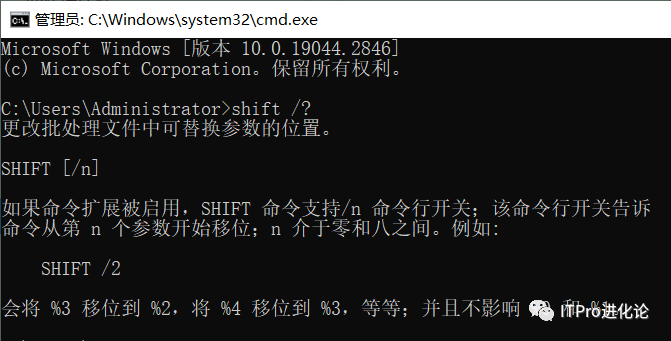 shift 命令用于更改批处理文件处理参数的方式,如指定起始处理参数的位置等。