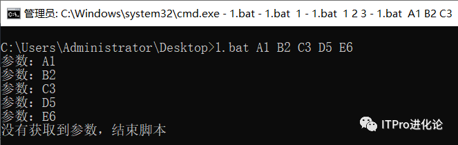实例:利用 shift 命令动态输出批处理执行时输入的所有参数。