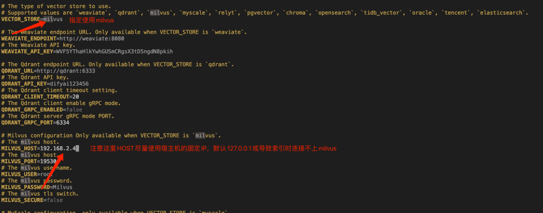 拷贝env并修改指定使用Milvus