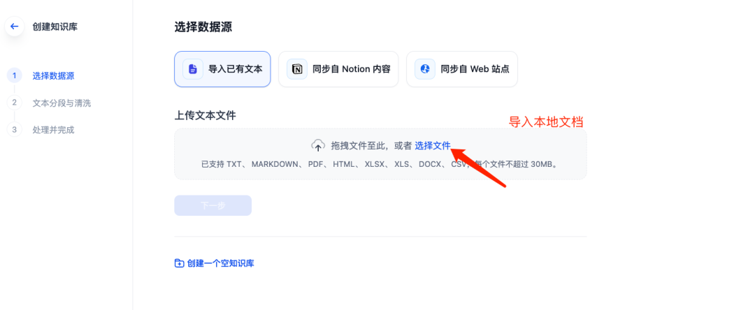 准备数据集创建知识库上传测试文档