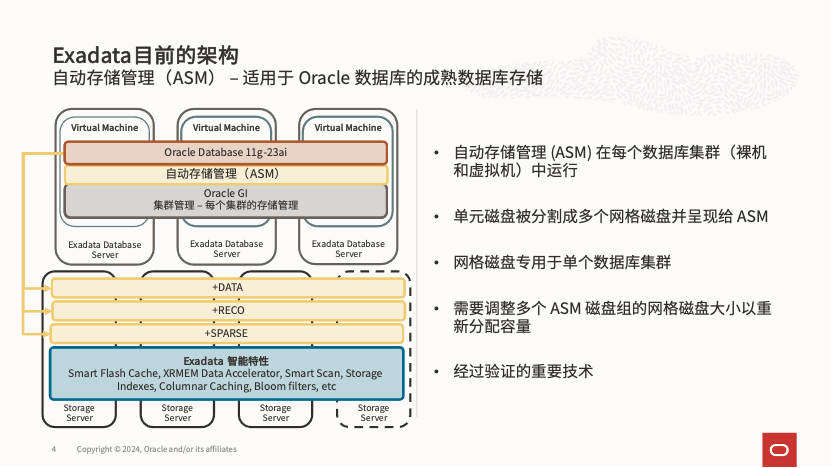 2) 当 Exadata 硬件扩容了存储节点后,VM 集群的存储集群扩容过程变得相当复杂,特别是在多代硬件共存的情况下,复杂性进一步增加。