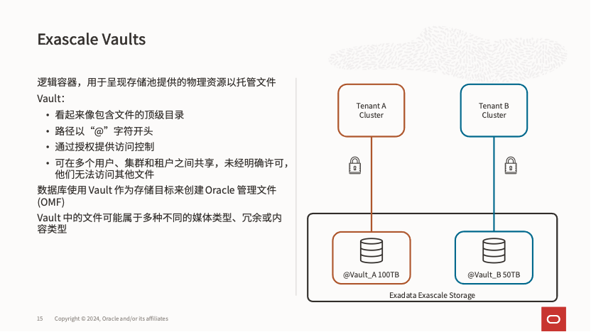 在 Exascale 中,为数据库直接提供数据存储的对象是 Vault,可以将其视为 Exascale 提供的智能共享文件系统,命名以 “@” 开头。