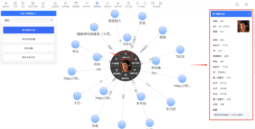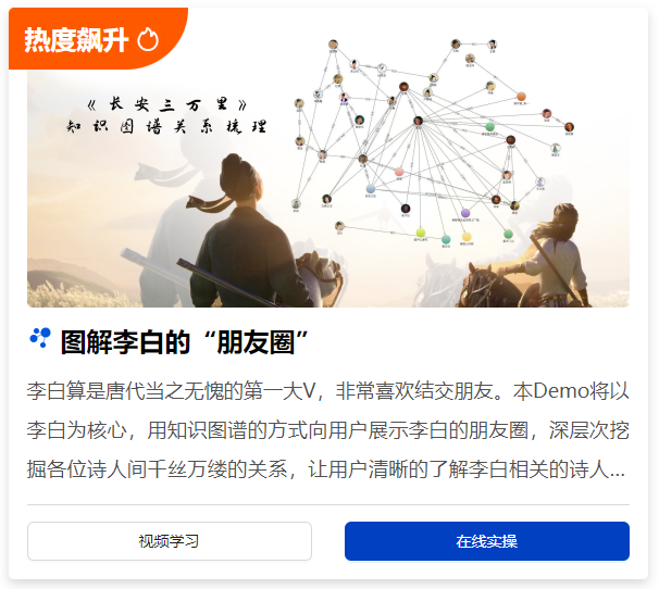 受到电影《长安三万里》的启发,我们以知识图谱的形式,将李白的朋友圈生动地呈现在你眼前。在这里,每一位诗人都是一个鲜活的节点,每一段关系都是一个引人入胜的故事。通过这个DEMO,你将能够深入了解李白与杜甫、王维等文人的交往,感受那个时代的文化气息,让我们一起来体验吧!