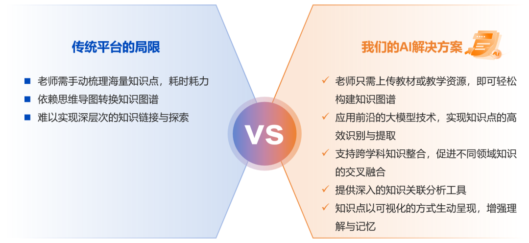 DEMO所展示的,只是我们知识图谱产品强大功能的冰山一角。如果你是老师,我们的平台可以帮助你构建课程知识图谱,将传统的教学资源转化为生动的知识网络,提高教学效率,激发学生的学习兴趣。