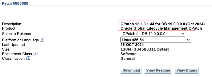 - OPatch 版本大于 12.2.0.1.43
