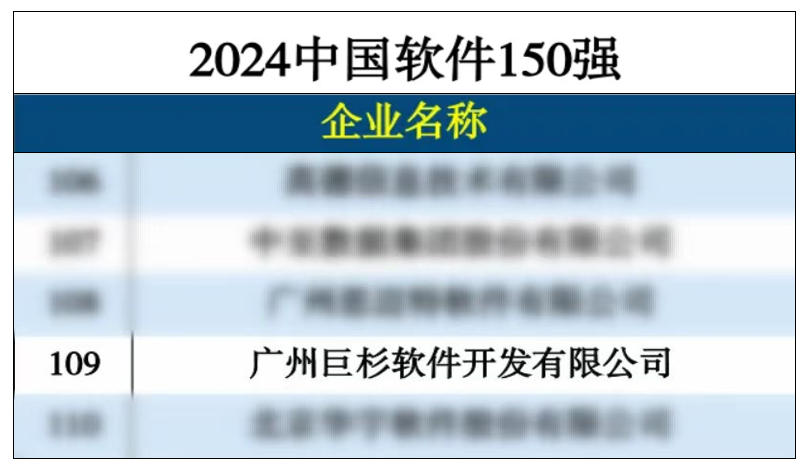 近日,由DBC德本咨询和《互联网周刊》联合发布的“2024中国软件150强”榜单正式公布。巨杉公司凭借其在文档型数据库领域的卓越表现,再次入选该榜单,排名第109位。