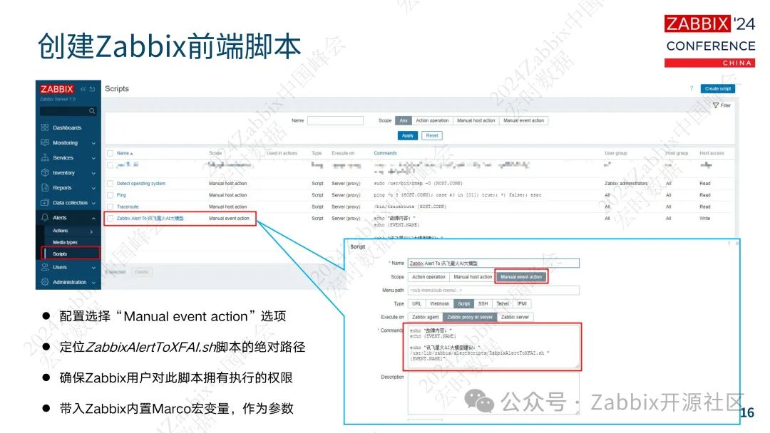 这一过程涉及到了对AI平台的接口进行测试,以确保数据能够正确地在Zabbix和AI平台之间传输。通过编写脚本,如ZabbixAlertToXFAI.sh,Zabbix能够将告警信息发送到AI平台,并接收AI平台分析后的结果。这一过程不仅需要技术的支持,更需要对AI平台的深入理解。