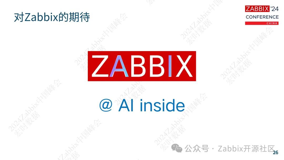 在今年9月份的Zabbix中国峰会上,【戳这里回顾2024年Zabbix中国峰会】来自Zabbix官方的大中华区培训师周松为我们分享了Zabbix如何与AI结合,让这个拥有长达25年历史之久的监控工具迸发新的活力。