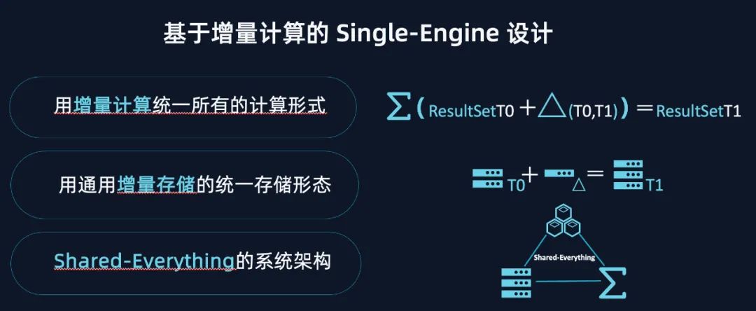 因此,我们提出了第四种新的计算方式,即增量计算。我们希望通过增量计算来统一这三种传统计算模式,最终形成一个一体化的引擎。