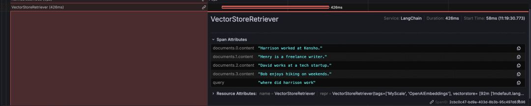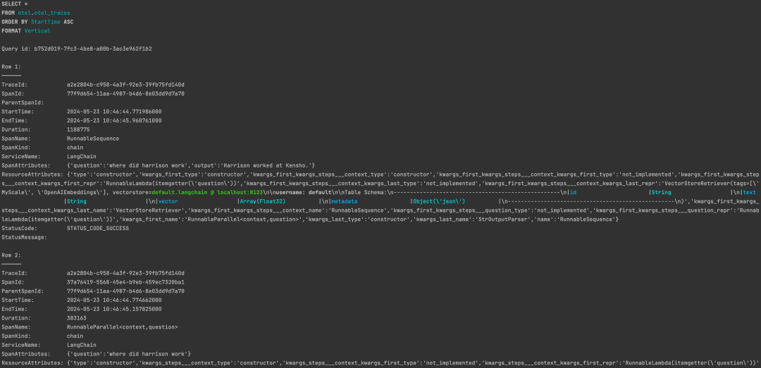 成功运行后,你将在 MyScaleDB 中的`otel.otel_traces`表中找到相应的跟踪数据。