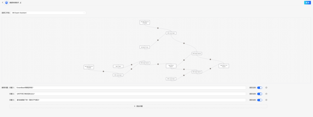 选择对应的工作流程,添加推荐问题,点击保存: