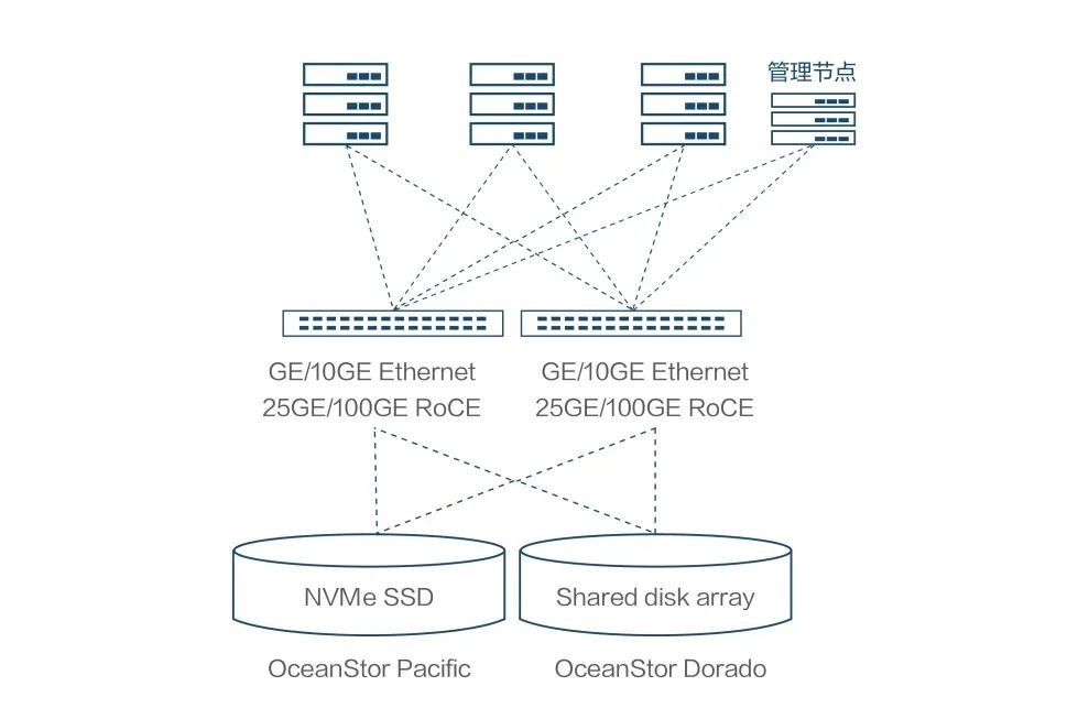 高性能方案:基于共享资源池、读写分离方案的数据库一体机,面向大数据量(>25TB)的高负荷场景,配置3台高性能鲲鹏服务器运行磐维数据库集群,数据存储在共享磁盘空间,无日志复制,主库性能零影响;备库可读,充分利用算力,可同时支持集中式、分布式存储,另外配置一台鲲鹏服务器运行运维管理工具。