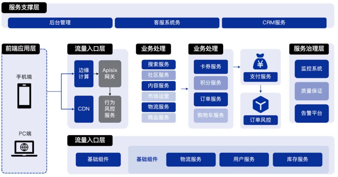 在之前业务架构的基础上,该跨境电商的业务痛点主要有四方面: