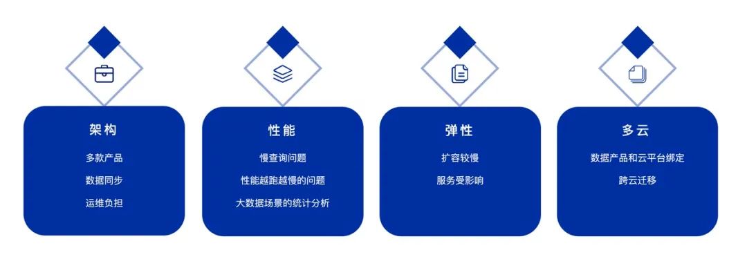 公司不同业务线在面临不同子场景问题时,使用了多种数据产品,如 PostgreSQL、MySQL、PolarDB、Elasticsearch、阿里云数仓 A 产品和阿里云数仓 C 产品等。采用越来越多数据产品解决业务问题的同时,也引入了新问题:1. 研发门槛高:构建复杂的系统要求研发人员熟悉多种产品及其特性,这显著提高了开发的难度和门槛。2. 运维复杂:多种产品的共存增加了运维工作的复杂性,尤其是在数据同步任务方面,给运维团队带来了额外的挑战。3. 数据延迟与不一致:尽管整体数据架构是随着业务需求逐步演进而形成的,但随着业务的发展,也暴露出了一些问题。一方面,系统内部多点数据同步不可避免地会导致一定的数据延迟;另一方面,这样的架构设计也可能引发数据不一致的情况。1. 之前使用的 PostgreSQL 在线上持续运行一段时间后,会发生某些场景查询越来越慢的问题。重启或手动执行 VACUUM FULL 后可恢复正常性能,但是 VACUUM FULL 会锁表影响线上服务,因此只能选业务低峰期执行。2. 存在较慢查询。如在 ERP 线物流场景下,大部分查询需求秒级返回,但从之前线上某天日志来看,单日最慢查询达 147 秒。3. 之前在大数据场景下使用 C 产品,涉及一个几十亿大表和其他表有比较复杂的关联和统计查询,只能支持最多一个月内的统计查询,时间范围有限,超出限制会出现内存溢出。扩容时效性慢。随着业务发展,线上各云产品实例随时有扩容需求。目前绝大多数云产品扩容时效性都在分钟以上,有的甚至需要 10 分钟,在面对扩容场景时有些力不从心。另外在扩容过程中服务也会受到一定影响,甚至需要停服进行升级。部分数据库产品和云数仓产品与云平台绑定。当客户有搬云或者出海等迁移需求时,在目标云上寻找替代品往往存在两大问题:1. 数据同步:数据同步本身就是比较薄弱的环节,容易出错,同步后数据校验也需大量人力。2. 无对应替代产品:某些数据产品与云平台绑定,换云后可能找不到对应替代品。ProtonBase 是一个云原生的分布式 Data Warebase。Data Warebase 这个词是由 Data Warehouse(数据仓库)和 Database(数据库)两个词融合而来。这也意寓它包含了数仓和数据库的所有能力。它具备多云原生、支持所有数据、在所有场景下挑战性能极限以及极简体验等特点。