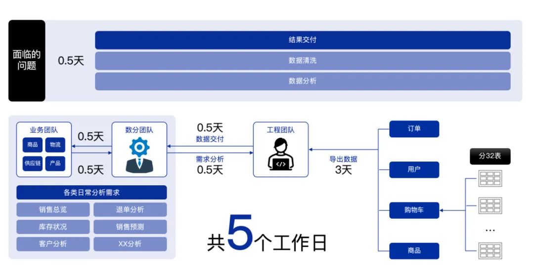 接下来,我们来看一下业务上线后遇到的一个问题:相同的查询 SQL 随着时间推移执行越来越慢。经过分析发现,这个问题主要和客户的业务场景特点有关,在该业务场景中,存在大量的更新(update)和删除(delete)操作,这在 PostgreSQL 中会导致较为严重的读取放大现象。相比之下,ProtonBase 基于 LSM-Tree(Log-Structured Merge-Tree)结构设计,能够通过适度的写入放大来避免读取放大,并且其合并(compaction)过程是由后台异步执行的,因此不会出现类似的问题。在这一场景中,ProtonBase 作为统一的实时数据仓库,替代了原有的多个线上只读从库。通过 ProtonBase 数据同步服务,实现了数据的高效同步,在提升性能的同时,取代了多个只读的 PostgreSQL 实例。此外,由于各个 PostgreSQL 实例的数据均已同步至 ProtonBase,并且 ProtonBase 拥有卓越的 OLAP 分析能力,性能比阿里云 A 产品更好,因此原有的 A 产品也被替换。这样一来,不仅整体数据架构得到了简化,还大幅减少了冗余存储。💡C 端数仓场景:5 天降低至 10 分钟,数据分析流程提速显著该客户 C 端原有的各个业务库是独立的 MySQL 或 PostgreSQL 实例。在业务初期,面对日常分析需求,工程团队通常的做法是从各个业务库中提取数据,再在本地使用 Excel 通过 VLOOKUP 函数实现数据的联接。由于初期各业务库的数据量不大,这种方法能够较快地解决业务问题,并在一段时间内满足了数据仓库的分析需求。然而,随着业务规模和数据量的增长,即便是稍微复杂一点的数据分析需求,从业务团队提出,经由数据分析团队进行需求分析,再到工程团队执行,直至最终交付分析结果,整个流程逐渐延长到了五天之久。在这种情况下,建立一个高效的 C 端数据仓库系统的必要性变得显而易见。