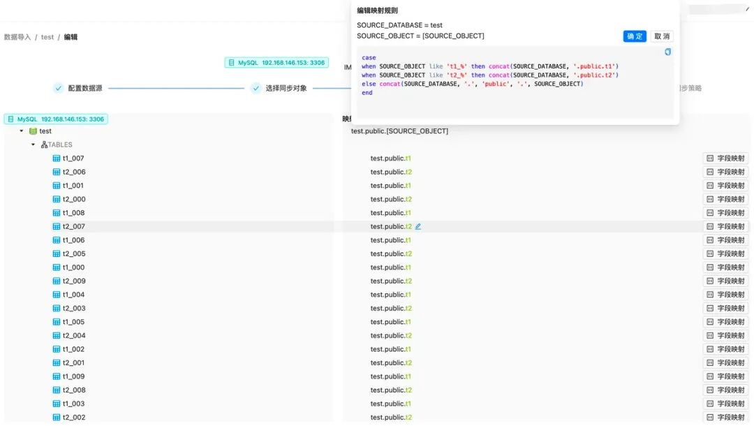 2. 对分库分表的场景,ProtonBase 数据同步服务提供正则表达式的配置方式,在数据同步的同时通过几行简单配置即可将数据映射到下游的同一张表里,降低分库分表场景的同步门槛