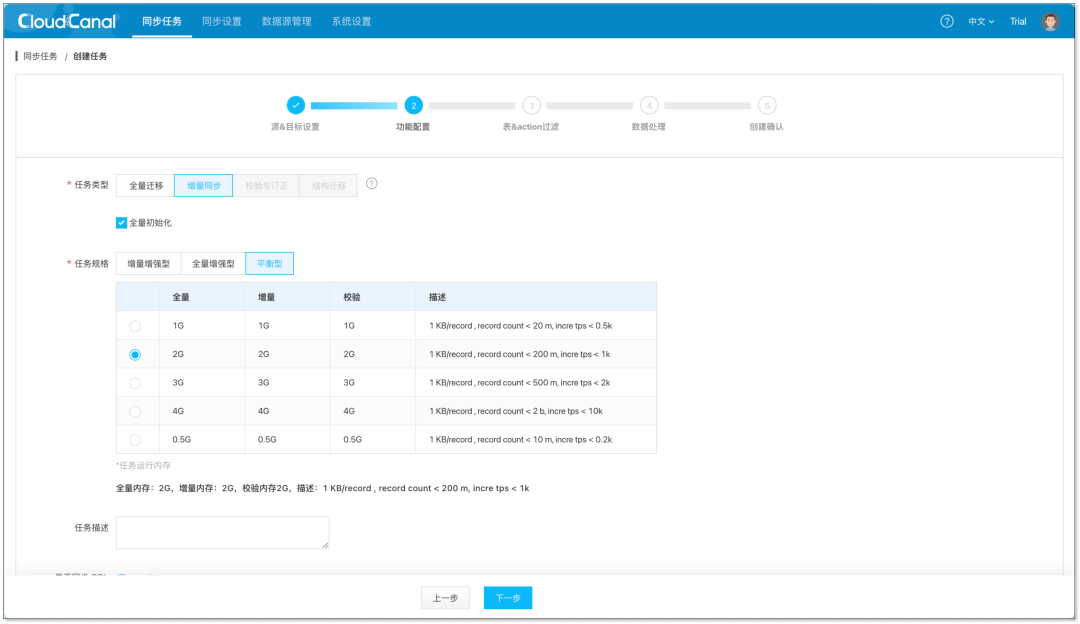 点击下一步,选择任务类型以及规格,规格建议 2G 及以上。