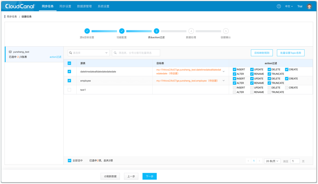 同步任务 -> 创建任务,选择对应的数据源,进行连接测试。